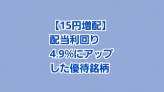 株主優待 【15円増配】配当利回り4.9%にアップした株主優待銘柄 先週15日に増配を発表した、高利回り優待銘柄をご紹介します。楽天証券トウシル連載記事が公開されました→かすみちゃんの買っ... 2025.10.20 株主優待