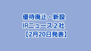 株主優待 株主優待廃止・新設 IRニュース2社【2月20日】