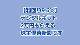 株主優待 【利回り9.6%】デジタルギフト2万円もらえる株主優待新設