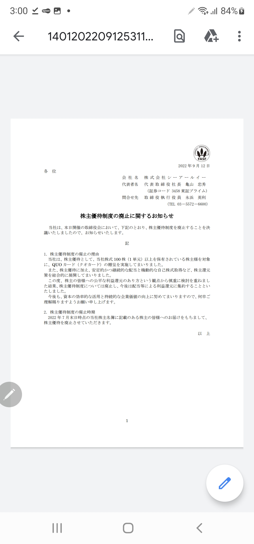 • 【利回り4.3%】株主優待到着|2026年まで継続→その後は累進配当へ