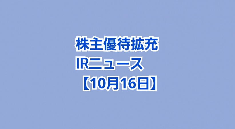 人気記事→優待廃止2社・新設1社 IRニュース【10月15日】