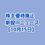 新着記事→優待廃止2社・新設1社 IRニュース【10月15日】