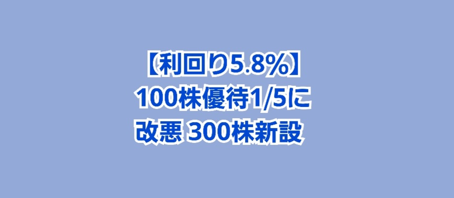 100株の場合、1年未満で500円。3年以上は2,000円の改悪となります。新たに300株優待が新設されます。