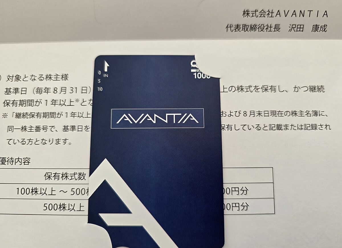 東海圏中心に戸建ての建設や販売をしている、AVANTIAの優待が到着しました。