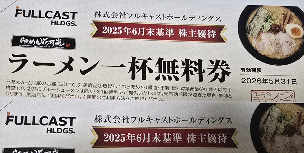 アルバイト紹介と同給与管理代行をしているフルキャストホールディングスの株主優待が到着しました。