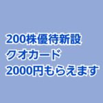 新着記事→【200株優待新設】クオカード2000円がもらえます