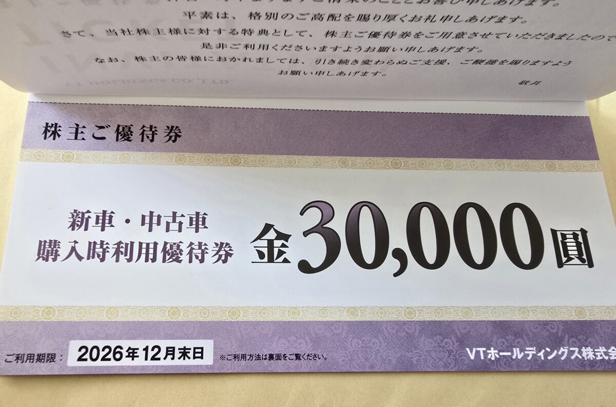 自動車ディーラーを運営しているVTホールディングスの株主優待が到着しました。
