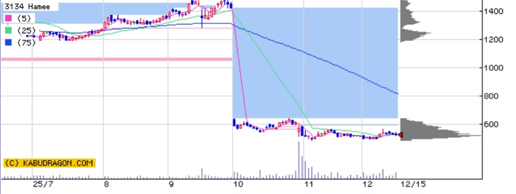 大幅な下方修正を受け、本日の株価は急落し、終値は前日比14.91%安の445円となりました。