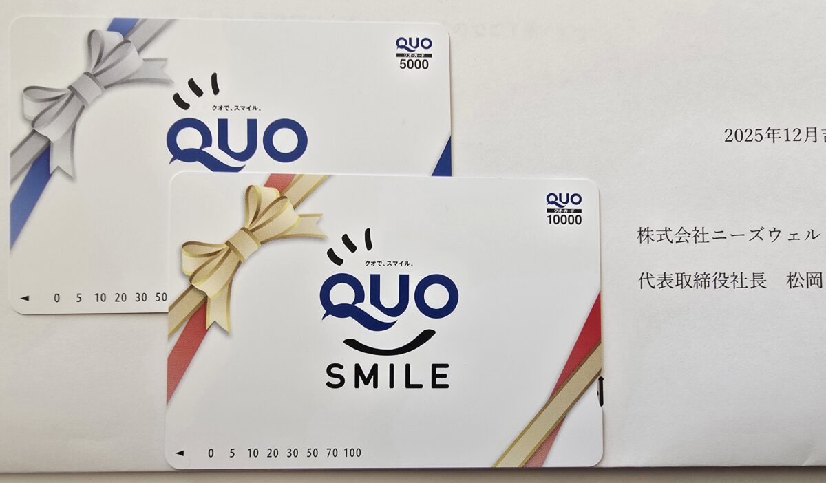 クオカード優待は1,000円~3,000円が主流なので、15,000円分はとてもありがたいです。