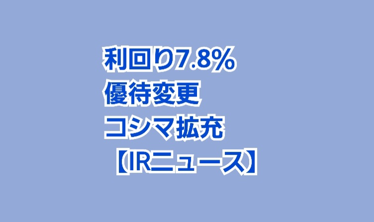 利回りは高いですが、赤字で改悪や廃止の不安はあると思います。