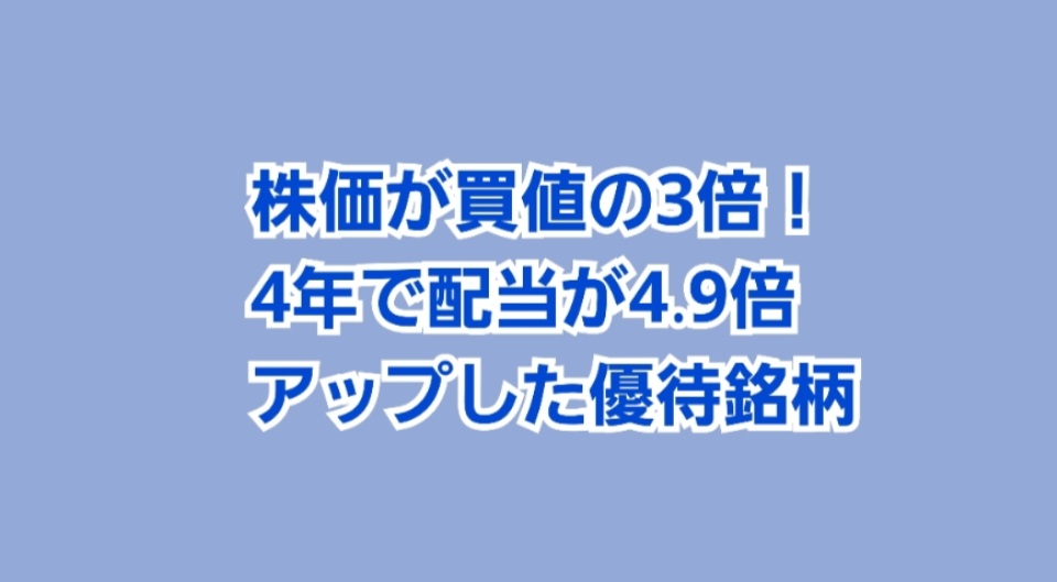 買値の3倍以上に株価が上昇しましたが、増配が続いている間は保有したいと思っています。興味ある方は、チェックしてみてください。