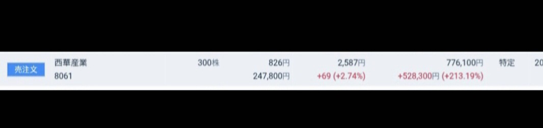 保有している工場や発電所向けの機械を扱っている西華産業の含み益が31万円を越えました。