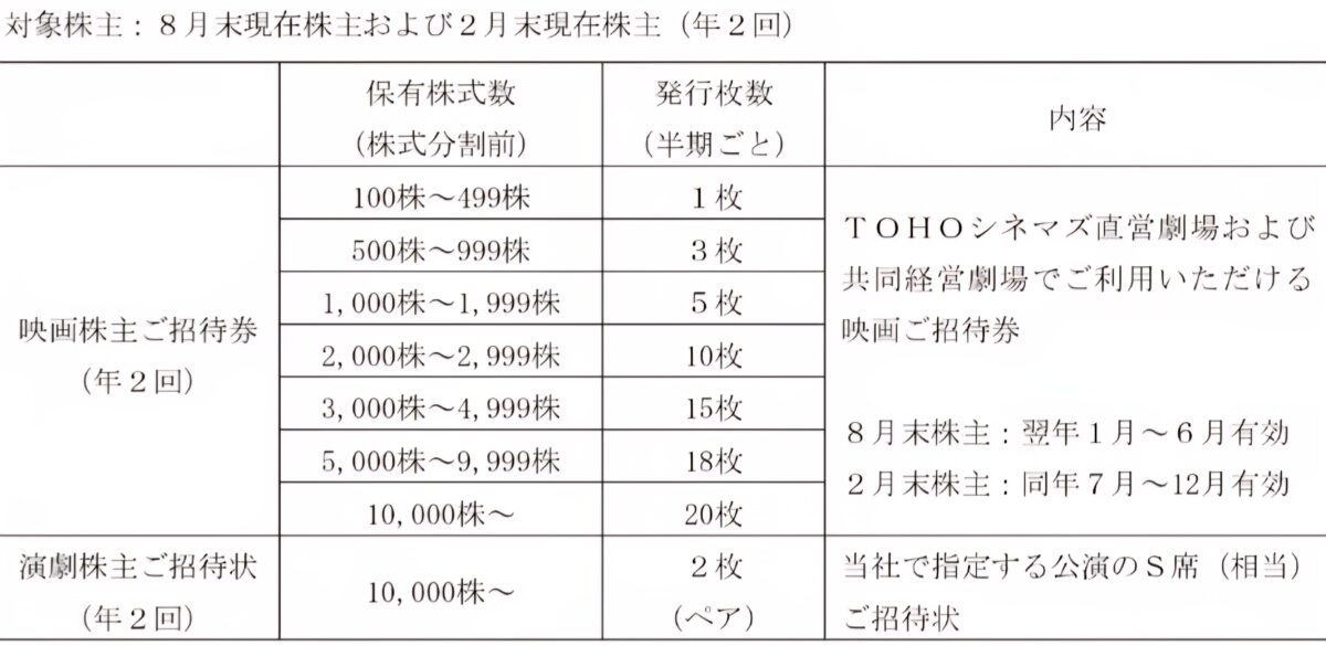 映画の製作や興行をしている東宝が、株主優待変更と株式分割を発表しました。