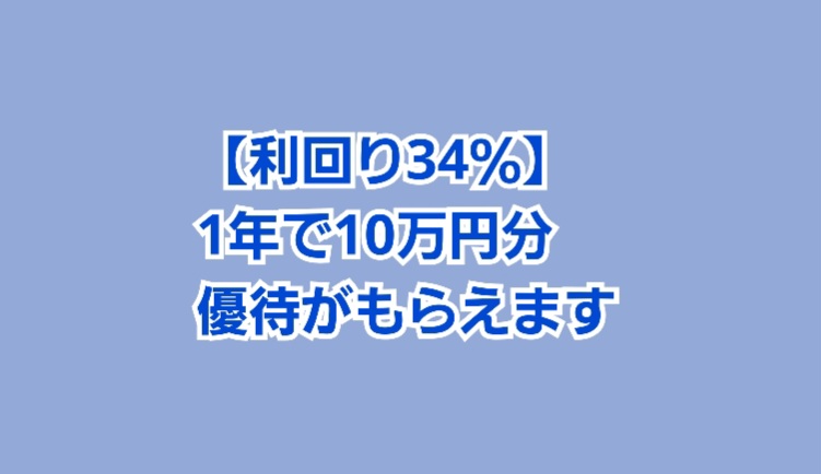 【利回り34%】1年で10万円分もらえる株主優待