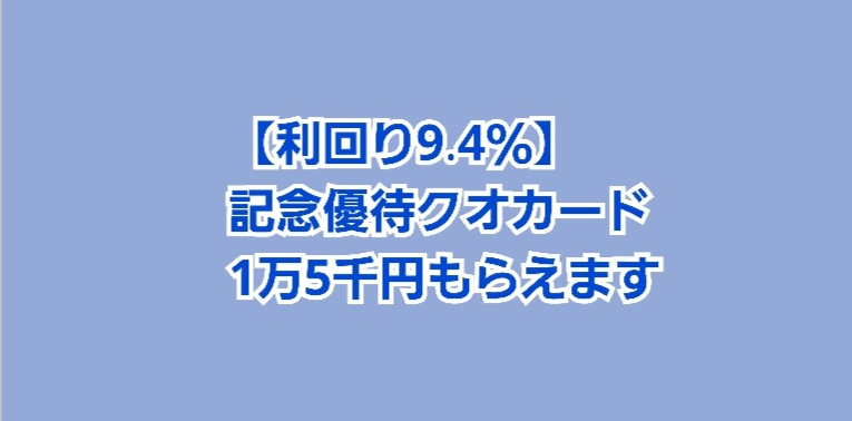 【利回り9.4%】記念優待クオカード15000円もらえます