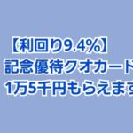 新着記事→【利回り9.4%】記念優待クオカード15000円がもらえます