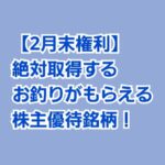 新着記事→【2月末権利】絶対取得するお釣りがもらえる株主優待銘柄