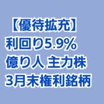 新着記事→【優待拡充】利回り5.9% 億り人が保有している3月末銘柄