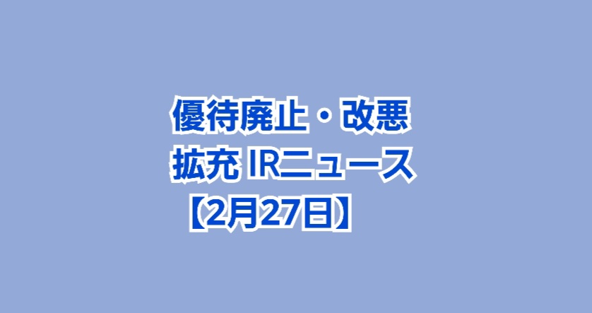 株主優待廃止・改悪・拡充IRニュース3社【2月27日】
