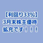 新着記事→【利回り33%】3月末株主優待拡充です