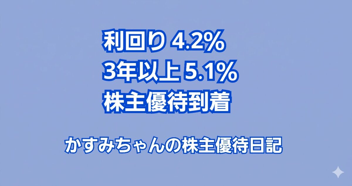 - 予想配当利回り:4.22%(3年以上保有で5.12%)