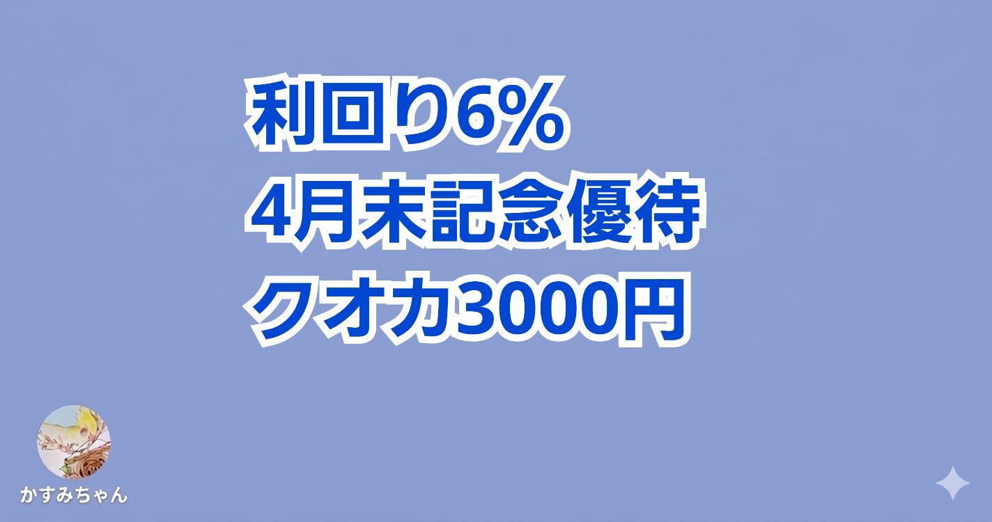 【利回り6%】記念株主優待 4月末権利QUOカード3,000円もらえます