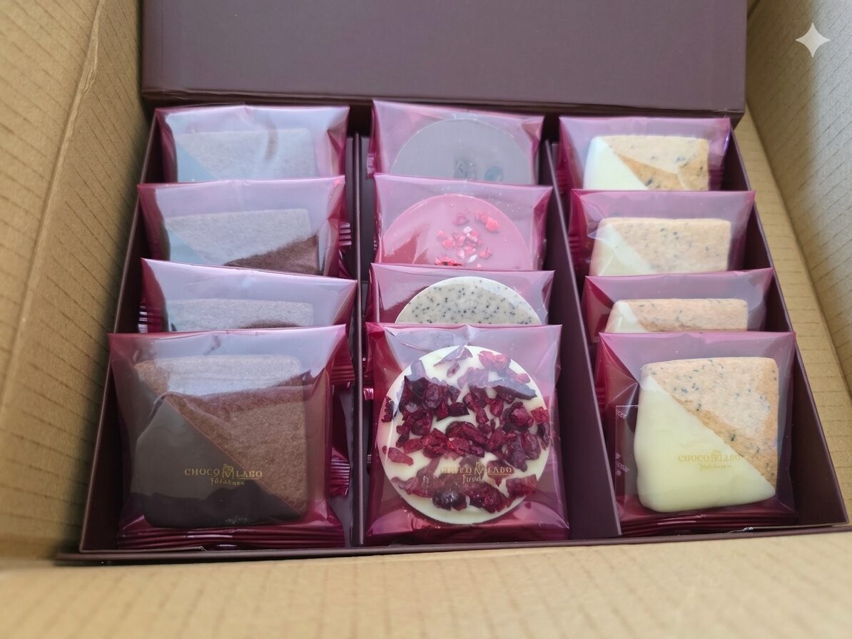 箱を開けた瞬間に広がる甘い香りと、まるでお花畑のような鮮やかなビジュアル…。実際に食べてみると、サクサクとした軽やかな食感に、チョコの濃厚な風味が絶妙にマッチして、まさに「至福のティータイム」になりました。