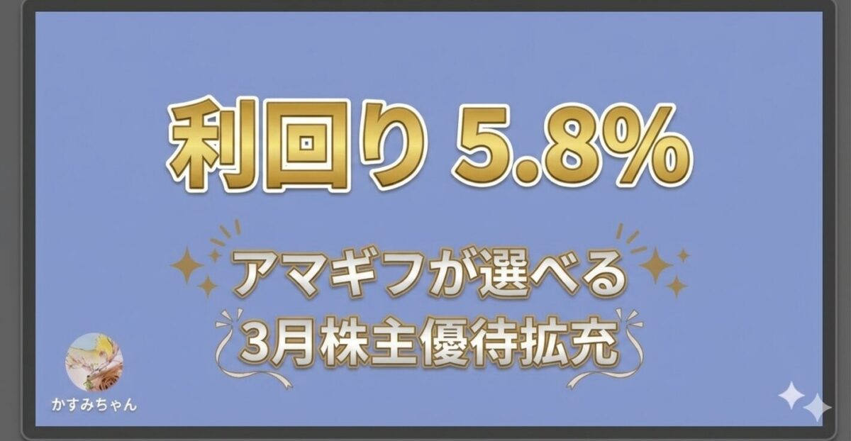 総合利回り5.8%の高水準に加え、Amazonギフトカードが選べるようになった注目銘柄です。