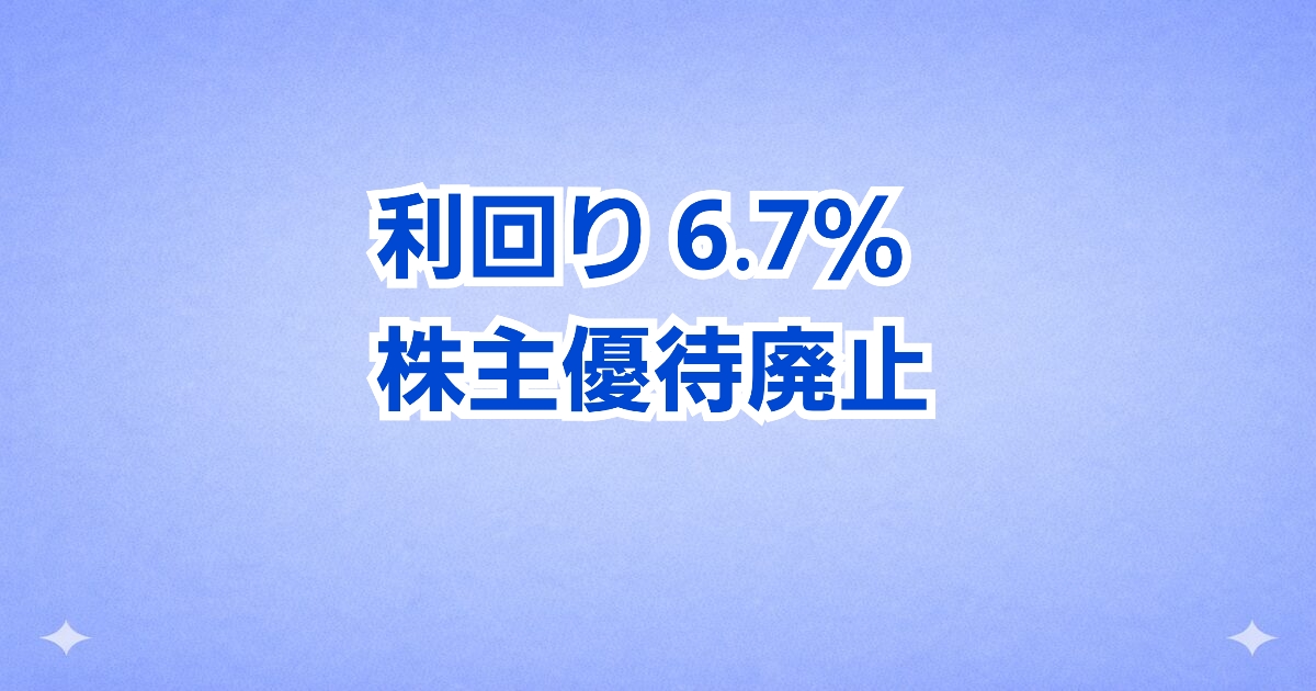 利回り6.7%株主優待廃止です