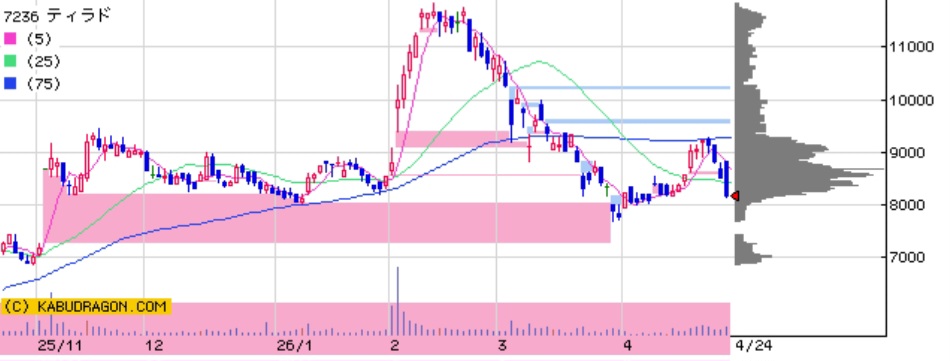 ティラド(7236)が配当800円へ増配し、利回りは約10%水準に到達。高配当株として一気に注目銘柄へなりました。