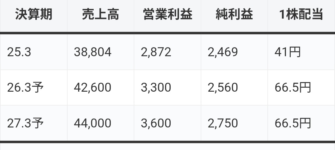 配当も41円→66.5円へ大幅増配予定となっており、 株主還元姿勢の強さが際立っています。