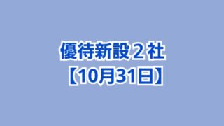 10月31日に発表された、優待新設2社をまとめ記事にしました。新着記事→人気株主優待が到着しました新設2社関連記事→テン...