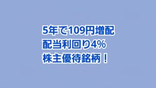 【5年で109円増配】配当利回り4% 株主優待銘柄